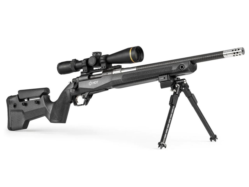 Carbonová lovecká pažba MDT CRBN je extrémně lehká (spolu s hliníkovou šachtou na zásobník, šrouby a zásobníkem) váží naprosto neuvěřitelných 910 gramů!!! 🙈 (jen pro srovnání - podobná carbon pažba Manners váží přes 1,5kg...)
