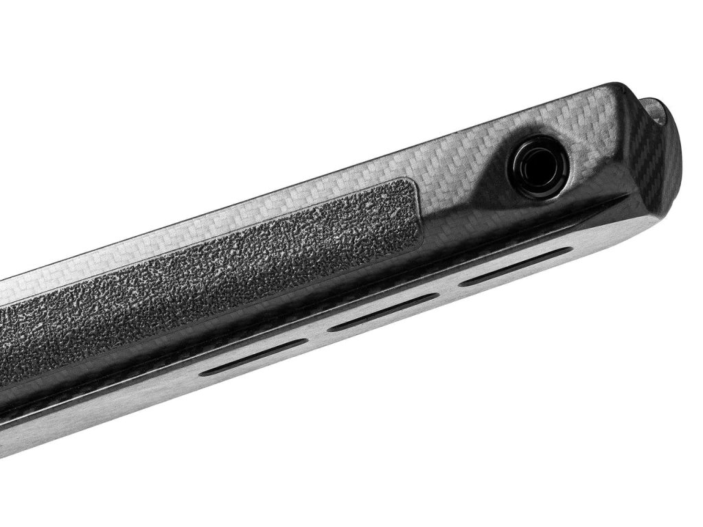 Další výrazná výhoda carbonové pažby je v tom, že carbon je tepelně nevodivý. Především v zimě je to příjemný materiál do ruky, nebo při zalícení na tvář. Plasty ani dřevo se s tím nedají srovnávat...
