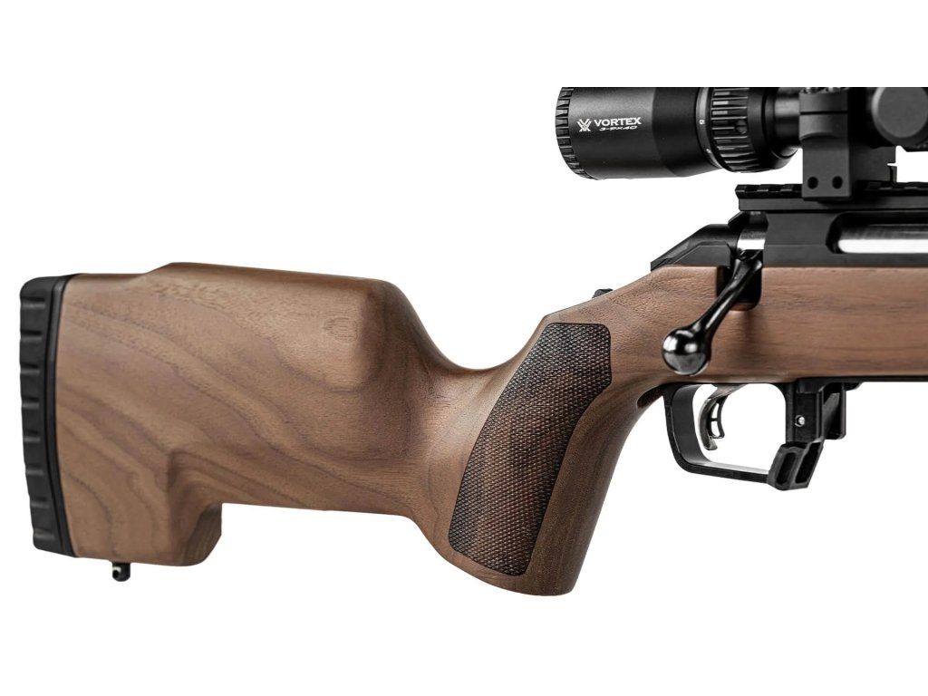Ořechová lovecká pažba MDT TMBR je jednoduchá lovecká pažba klasického vzhledu s moderním uložením závěrového systému. Ve variantě Hunter s hliníkovou šachtou s lučíkem na AICS zásobníky.